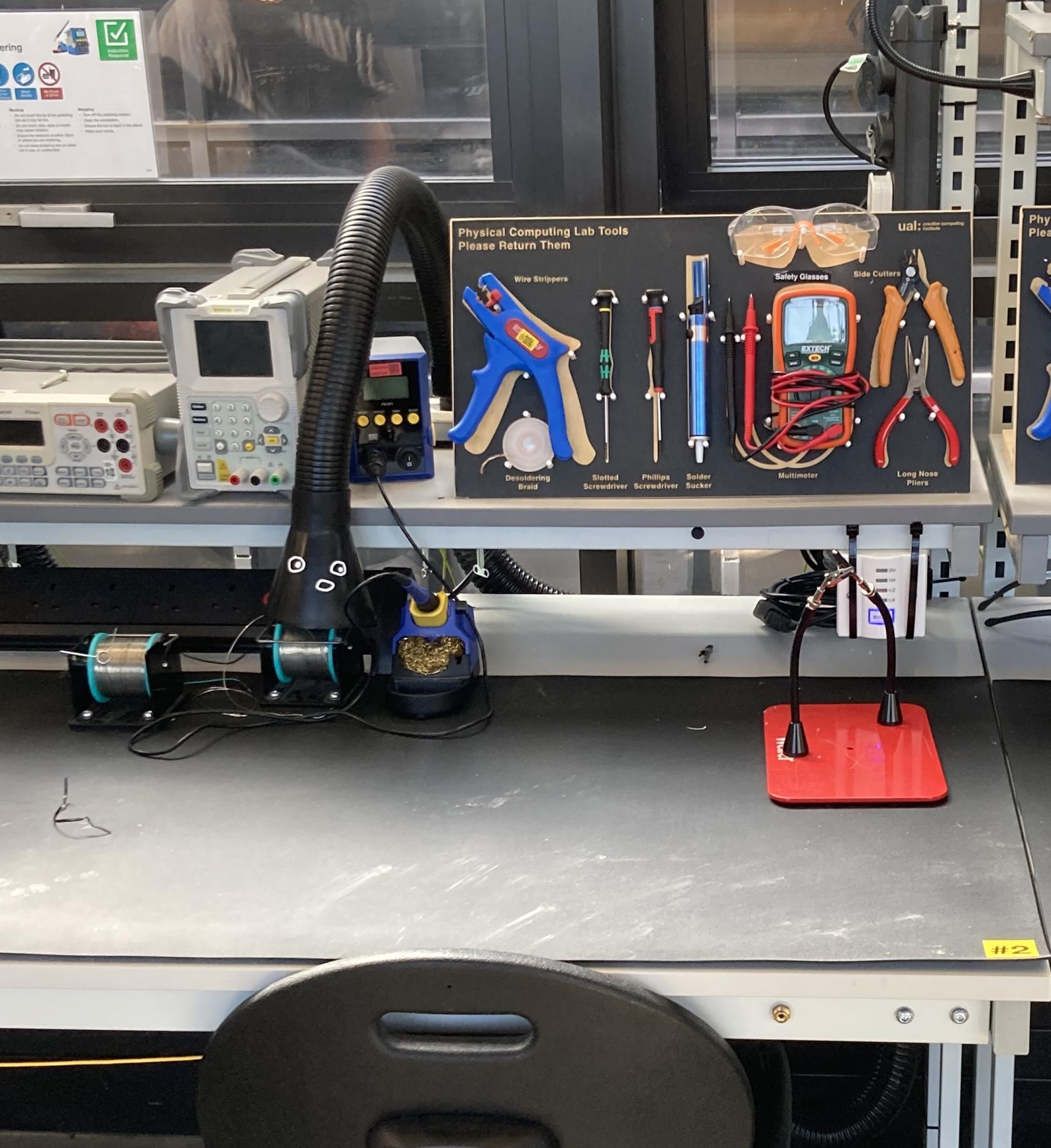 Additional prototyping tools, such as alternative wire strippers, JST connector crimpers and a wider range of screwdrivers are available within the space.
