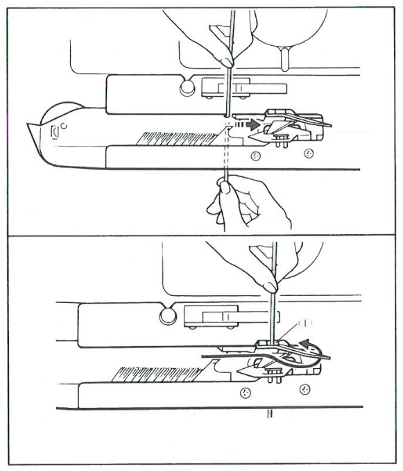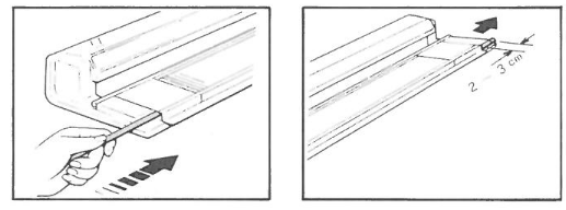Using a screw driver or pencil, push the sponge bar from the left side of the machine so that it protrudes by 2-3cm.
