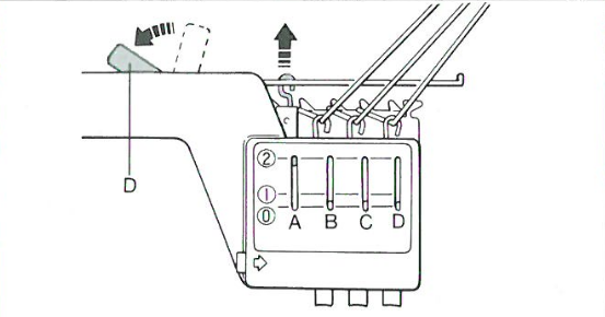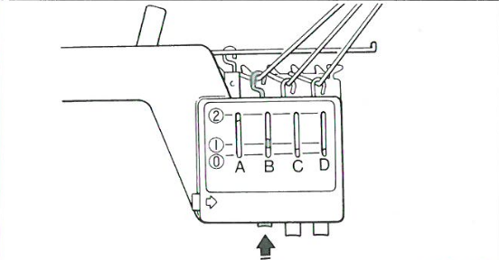 To switch to Yarn B, push Holder Button B to move it into (1) position