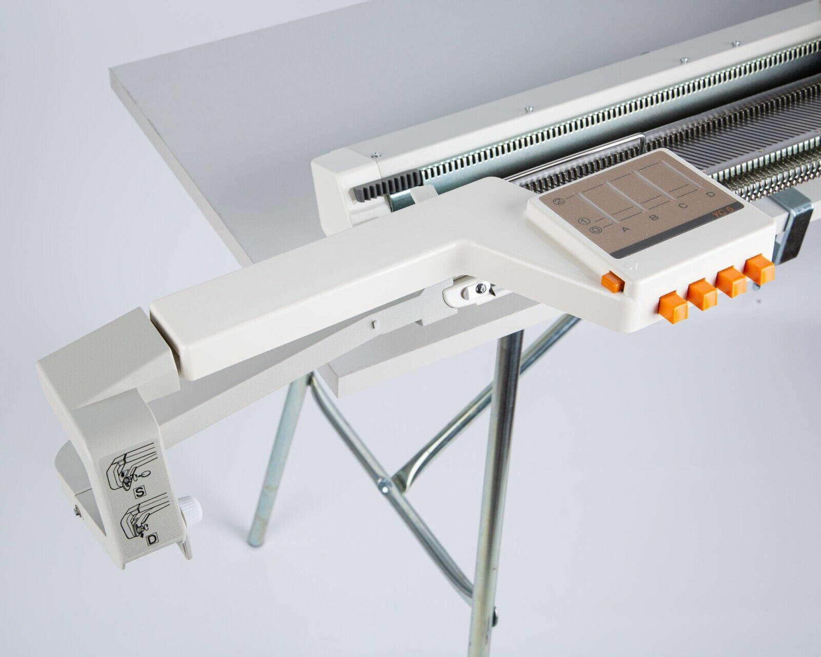 - When using the Yarn Changer, there will be a strand of yarn going veritcally between rows of the same colour. This is something to be aware of if trying to knit stripes of move than 4 rows per colour as it will limit the amount the fabric can stretch.
