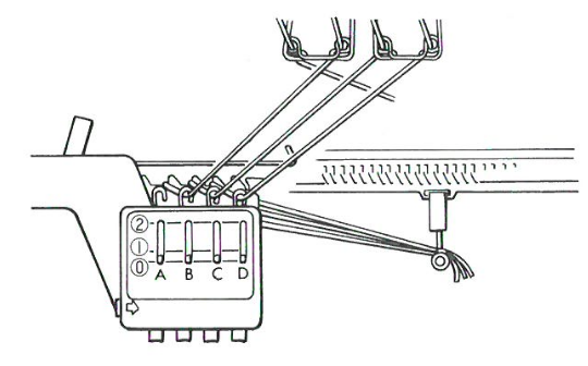 The Silver Reed YC6 Automatic Yarn Changer is an attachment for the knitting machine that allows you to semi-automaticaly switch between 4 different yarn colours. You can find the manual here.