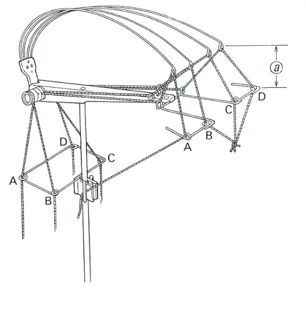 Take yarns B, C, and D and hook them into the Yarn Changer as below then wrap the ends around the post.