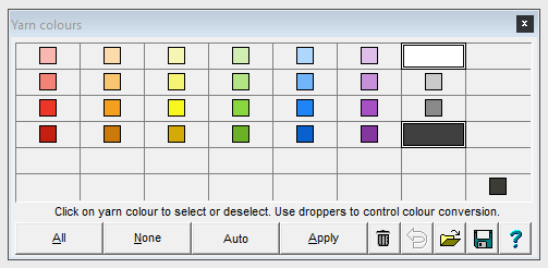 The last option allows you to select the yarn colours that will be used. However, to get the best representation of your graphic, it is best to select the two colour of the monochromatic image - normally black and white.