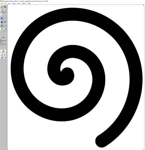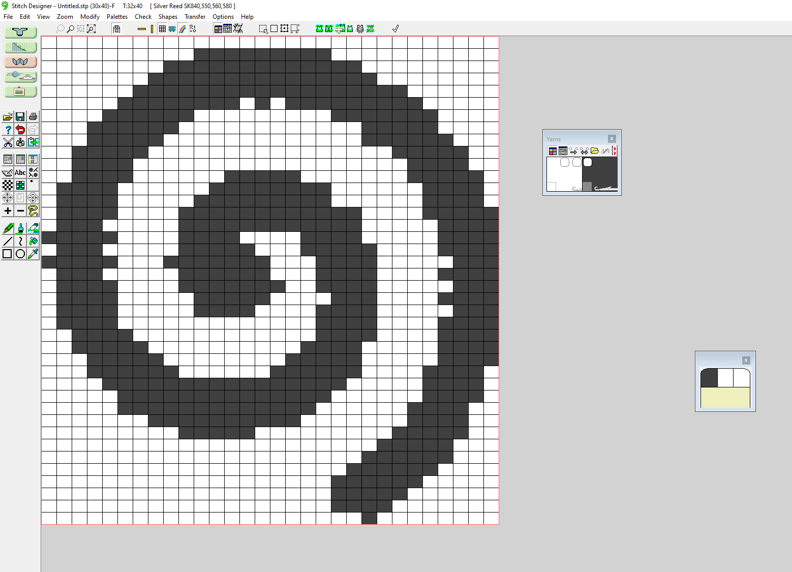 The DesignaKnit Graphics Studio is used to convert an image into a knitting pattern. The image must be monochromatic as we are only able to knit with two different yarn colours per row.