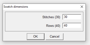 When you enter the interactive knitting mode from the stitch designer, you will get the below pop-up. The numbers in the brackets is the size of your design and it is asking you how large you want your full swatch to be. If you want to knit just one copy of your design, match the values. If you want it to repeat, enter in a multiple depending on how many repeats you want.