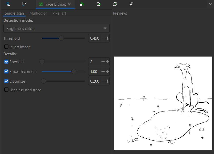 Have a play around with the different settings to get the best preview then click Apply. This will generate a vector version of your image that you can now convert to an embroidery file.