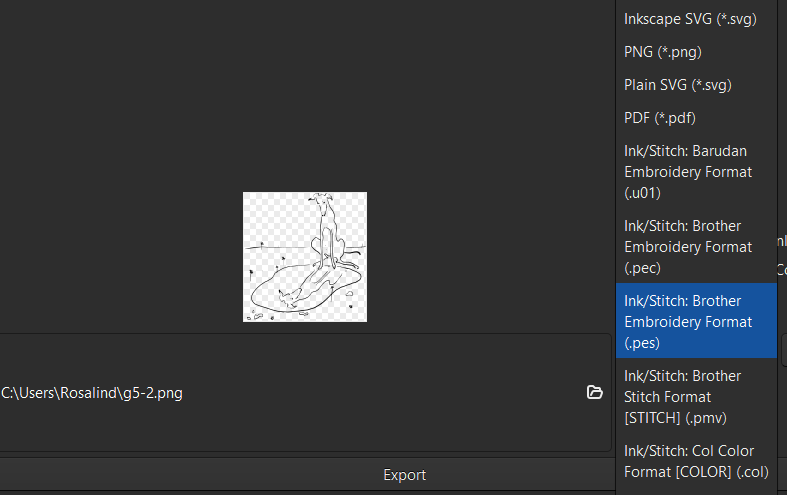 This will bring up the Ink/Stitch window and will show you a preview of the design as an embroidery pattern.