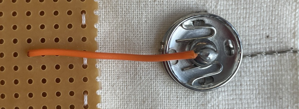 A big challenge with integrating electronics into textiles is making a good and durable connection between a metal wire/component and the conductive yarn/thread. Below are a few examples of how this can be done.