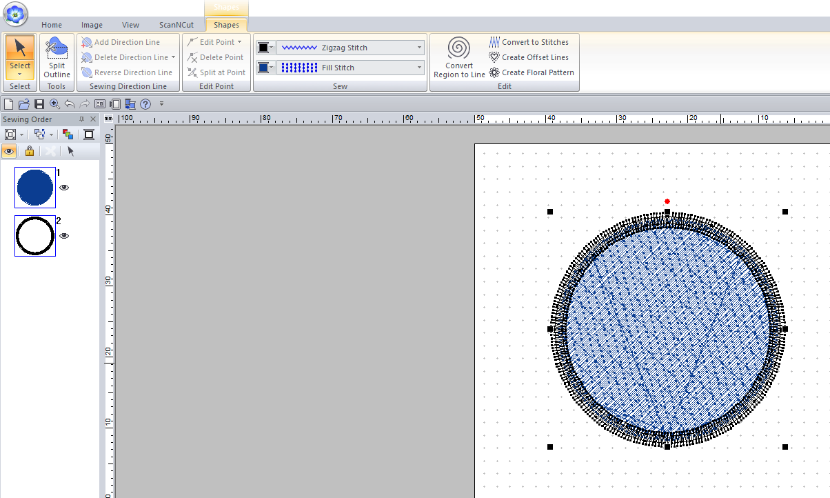 This tab allows you to edit any shapes that you add to the canvas. You can change options such as the type of stroke and fill stitches. This is something that will effect the appearance of your embroidery a fair amount, so is something you should definitely consider.