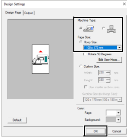 Most of these are standard options (open, save, zoom, etc). The other one that is regularly is the design settings option (8th from the left), which can be used to change the size of the hoop you are designing for.