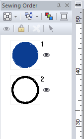 This pane will show you the order in which the sections of your design will be sewn. A useful option is the optimise sewing order button (with the red, green, and blue squares) which will group together all parts in the same colour to make the sewing process more efficient.