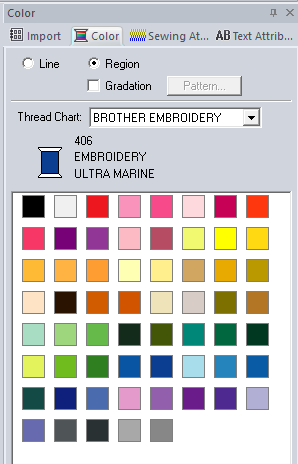 This panel is used to change the preview colour of your design. As this software is made by Brother, the colour numbers will match up with the Brother threads that we have.