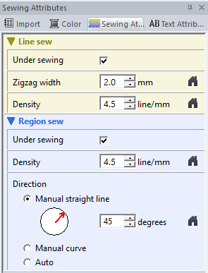 In this section we can change some attributes of the stitches such as density, width, and direction. For different fill types, there may be slightly different options in this section.