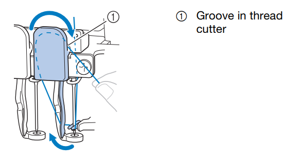 - Securely pass the thread through the groove in the thread cutter, then lightly pull the thread to cut it.