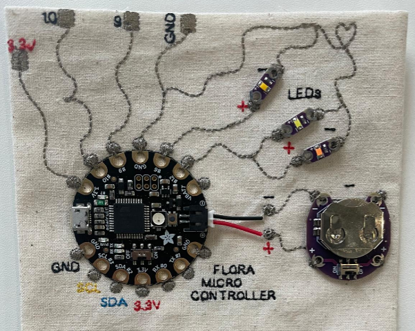 You can use this to make embroidered circuits, like the example below, or touch sensors.