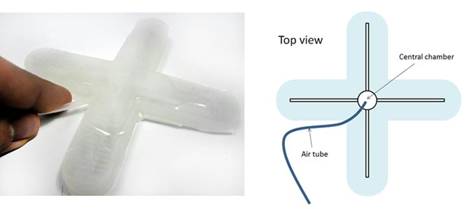 The general idea of cast silicone actuators is to create an air pocket that will change the internal shape of the component when the air pressure increases. The shape of this internal section will totally change the behavior of the actuator you are making.