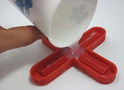 Before silicone is poured into the mould, each layer of the mould should be sealed together with glue to prevent leaking.