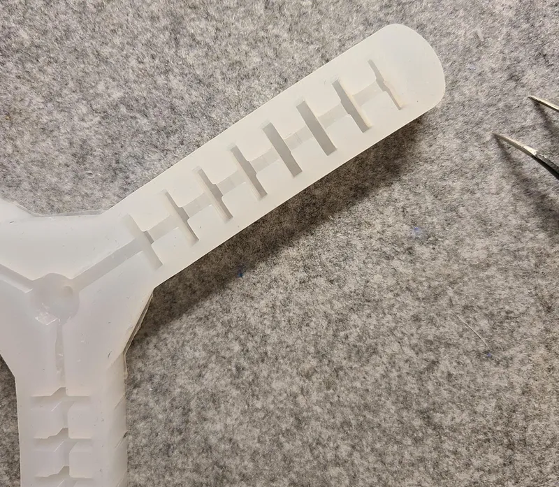 Leave the moulds to cure for at least 3 hours. Gently demould your designs -- you can use tweezers and/or spudgers to do this, but be careful not to pierce the silicone.